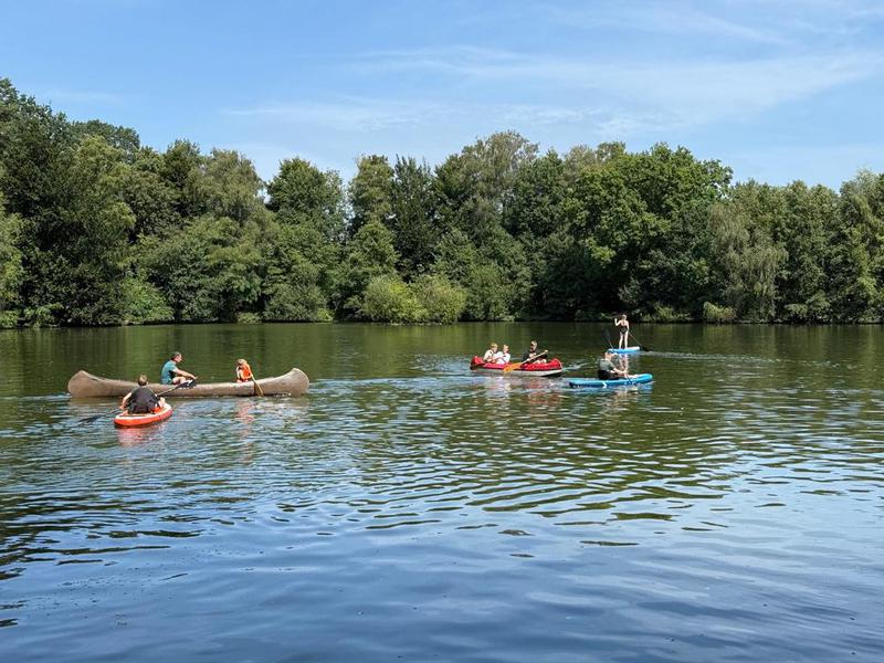 Das Lager lag innerhalb eines Waldstückes direkt am öffentlichen Waldfreibad in Steinbeck, so dass natürlich Baden ganz ober auf der Liste der Lageraktivitäten stand. Besonders gut kamen die mitgenommenen Kanus und die SUP-Boards für das Stand Up Paddling bei den Jugendlichen an.