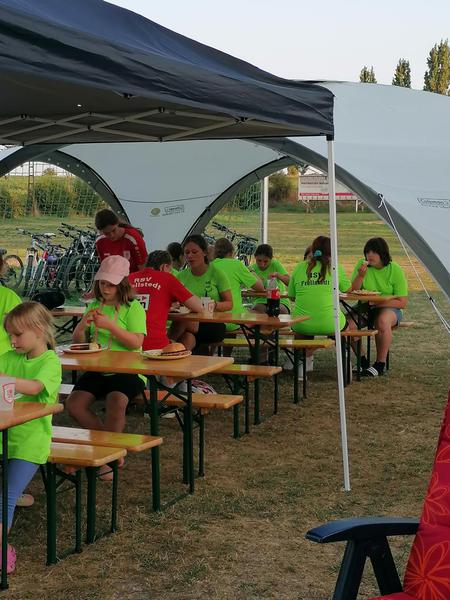 Die Radfahrer wurden von unserem RSV Bus mit einem Versorgungsteam begleitet, dass an mehreren Zwischenstopps für Getränke sorgten. Auch die Wurst- und Käseplatten holte das Versorgungsteam vom Fleischer ab, damit diese am Zielort aufgebaut werden konnten. Dort standen sie dann zum Verzehr bereit, als die Radfahrer eintrafen.