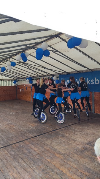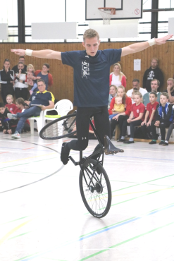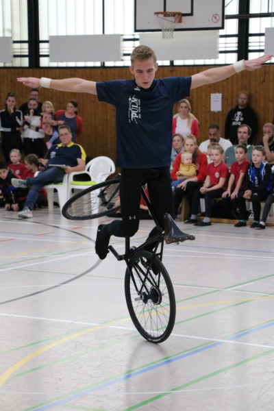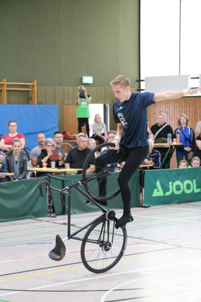 Sowohl im Einrad, Hochrad, Radball und Einrad-Polo zeigte nicht nur der Nachwuchs, sondern auch die Erwachsenen ihr Können. Besondere Aufmerksamkeit erhielten Vanessa Schilling, Mia Syrzisko und Laureen Borgstede für ihre Darbietung auf den über zwei Meter hohen Hochrädern.
