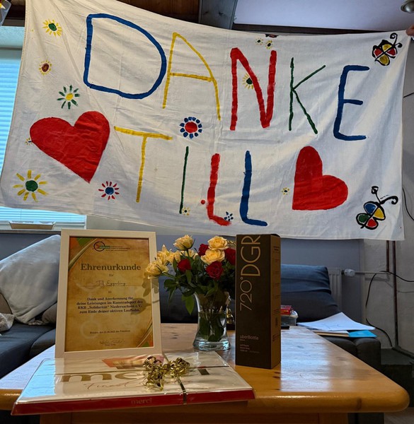 Bei der Siegerehrung erhielt Till einige Abschiedsgeschenke, darunter eine Ehrenurkunde für seine grandiosen Leistungen über die vielen Jahre hinweg. Die Kinder und Jugendlichen des Vereins haben für Till ein Gedicht eingeübt, welches sie ebenfalls zur Siegerehrung vorgetragen haben. Nach dieser Zeremonie bedankte sich Till bei allen für die unvergessliche schöne Zeit und die Unterstützung. Er betonte, dass er sich nicht komplett zurückziehen wird, sondern die kleineren Sportler*innen weiter als Trainer unterstützen wolle.
