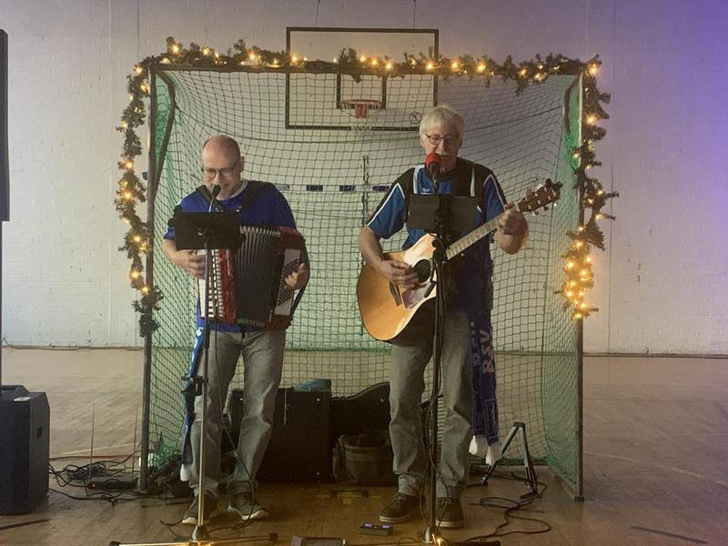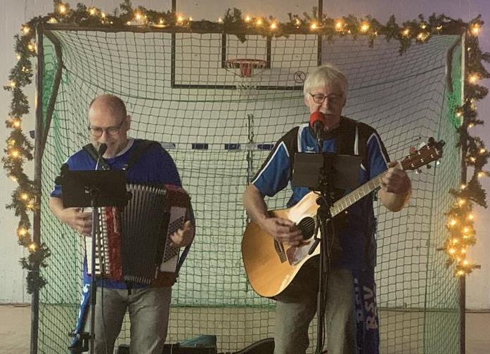 Zwischendurch wurden auch die Stimmbänder beansprucht. Unter der Begleitung von Burkhard Staas und „Siggi“ Langemeyer mit Gitarre und Akkordeon wurden zusammen Weihnachtslieder gesungen.