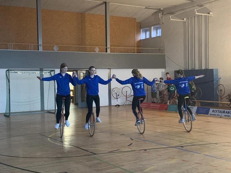 Die 4er Kunstradsportmannschaft Elite /offen in der Besetzung Sjard Fehlig/Melissa Bierwirth/Pia Fricke/ Sascha Lüder den ersten Platz.