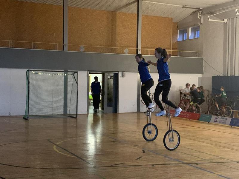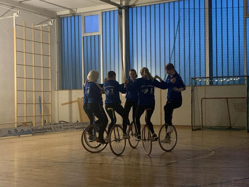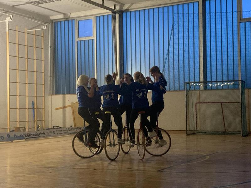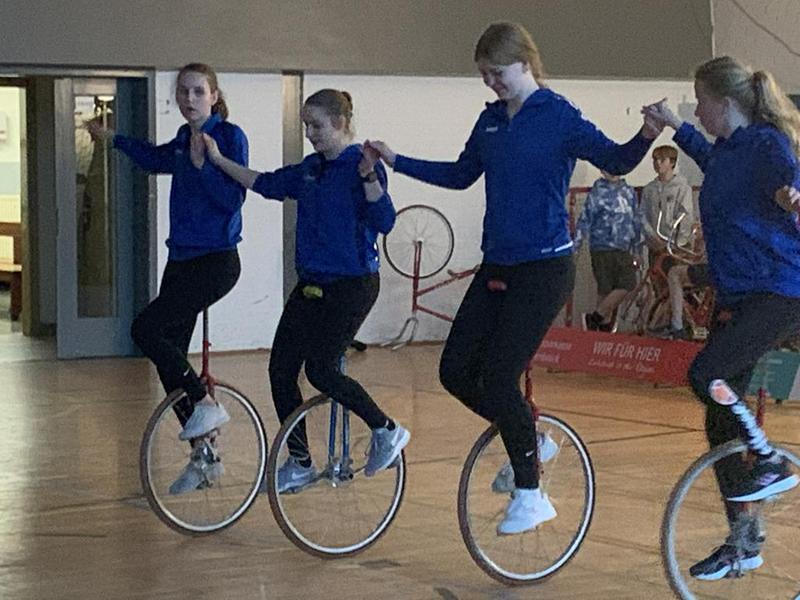 Begeistern konnte der 4er- und 6er-Einradreigen. Staunen kam beim gekonnt vorgeführten Hochrad-Reigen auf. Im Radball trugen die Schülerinnen und Schüler ein kleines Turnier von jeweils 2x2 Minuten aus. Den sportlichen Abschluss machten die Damen im Einradhockey.