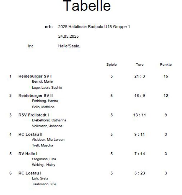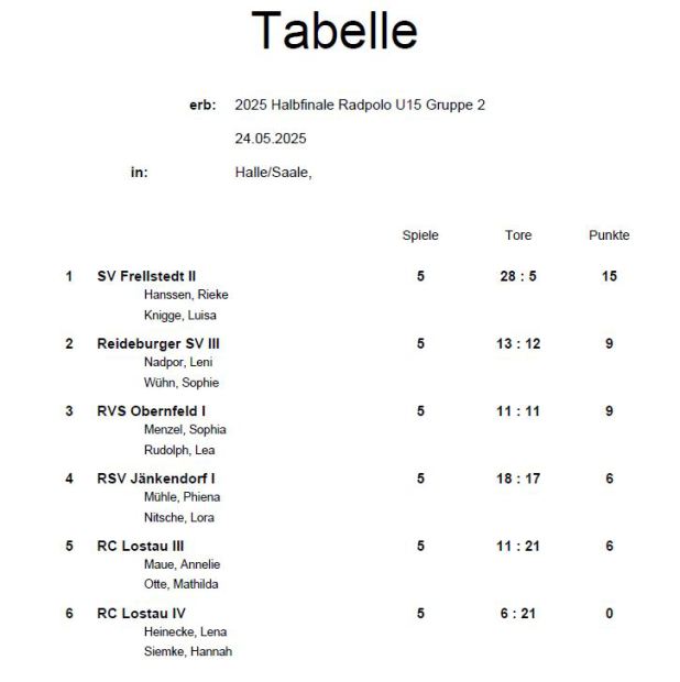 Mannschaften des RKB "Solidarität" Niedersachsen in der Liga U15