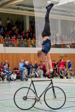 Till hatte erstmals den Lenkerhandstand im Programm, den so, möchte ich sagen, in Norddeutschland kein anderer Sportler derzeitig fährt. Im zweiten Anlauf schaffte Till ihn souverän, und auch das übrige Programm spulte er mit nur wenigen kleinen Unsicherheiten ab.